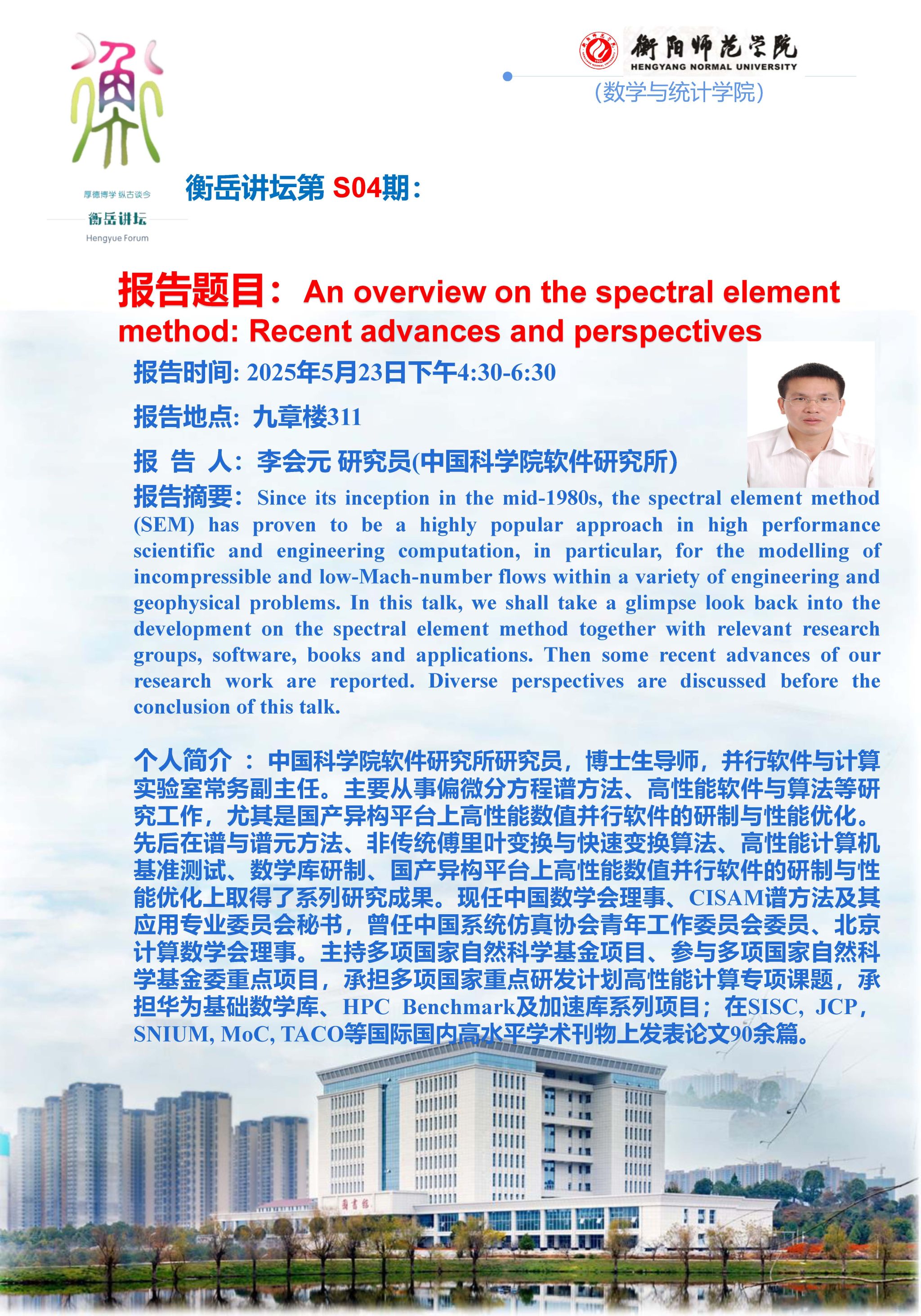 李会元:An overview on the spectral element method: Recent advances and perspectives